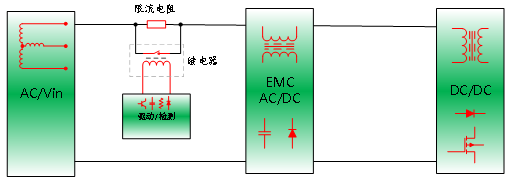 在AC电源系统设计中,浪涌电流是常见且危害较大的问题 —— 尤其AC系统供电在90°相位角时、负载带大容量滤波电容或电机负载的系统中,通电瞬间易产生正常工作数倍浪涌电流。若不抑制,可能导致熔丝熔断、整流桥损坏或电容过应力。